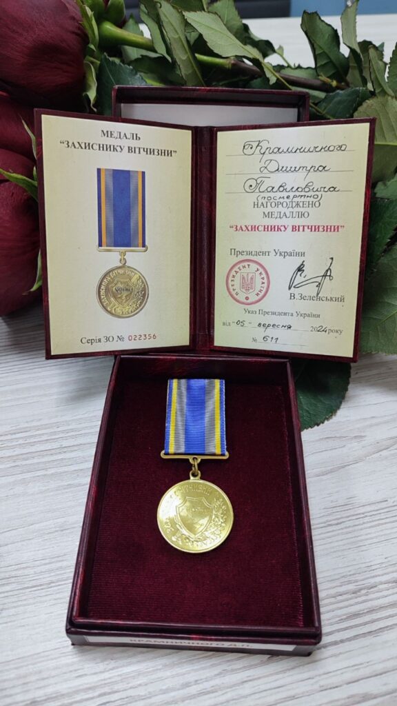 • Медаль “Захиснику Вітчизни” (посмертно), указ Президента України В. Зеленського від 05.09.2024 року №611.