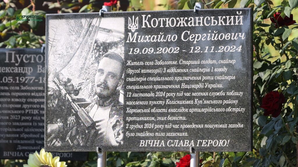 12 листопада 2024 року молодий воїн Михайло Котюжанський зник безвісти під час несення служби поблизу населеного пункту Колісниківка Куп’янського району Харківської області внаслідок ворожого обстрілу. У рідних була надія, що Захисник живий, але трагічна звістка швидко її зруйнувала. 2 грудня 2024 року під час пошукових заходів у зазначеному районі знайшли тіло Михайла.