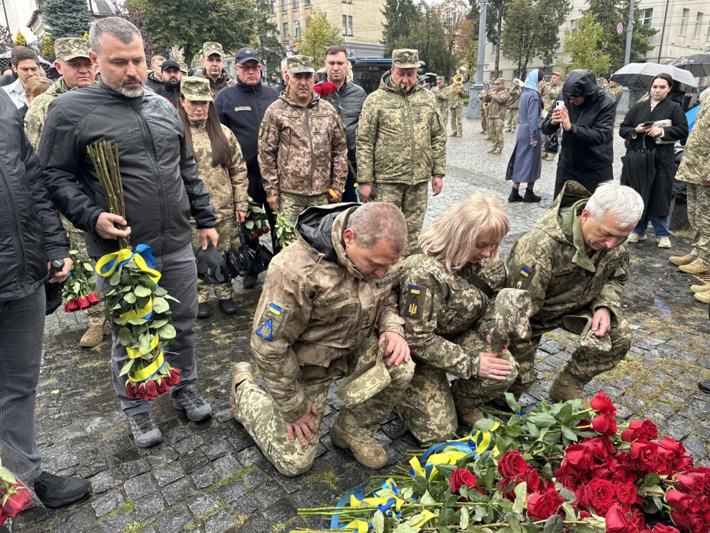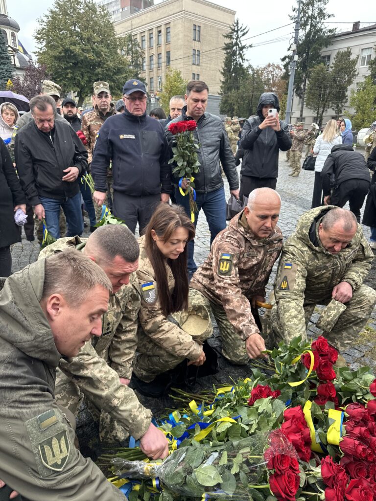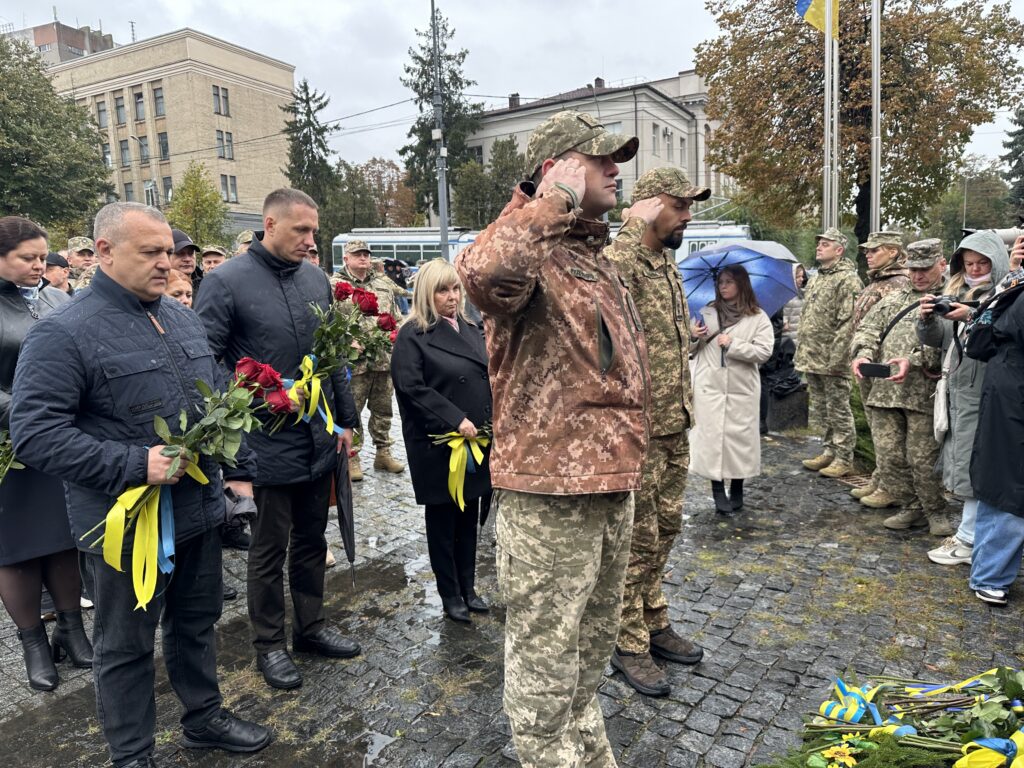 На площі Шевченка зібралися військовослужбовці, родини оборонців, жителі міста, рятувальники, правоохоронці та представники влади. Усі вони прийшли, аби згадати мужніх воїнів, котрі пожертвували власним життям у боротьбі за Україну.