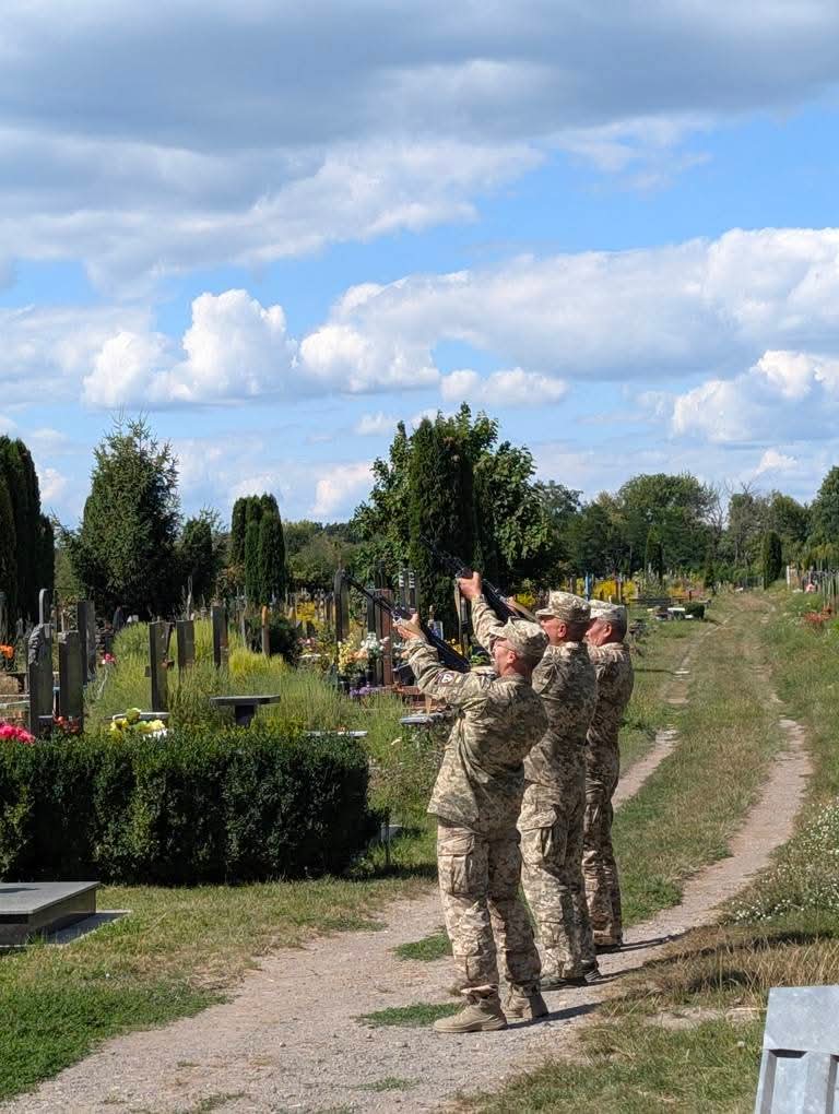 Поховали Героя з усіма почестями на міському кладовищі під залпи почесної варти та звучання Державного Гімну України.